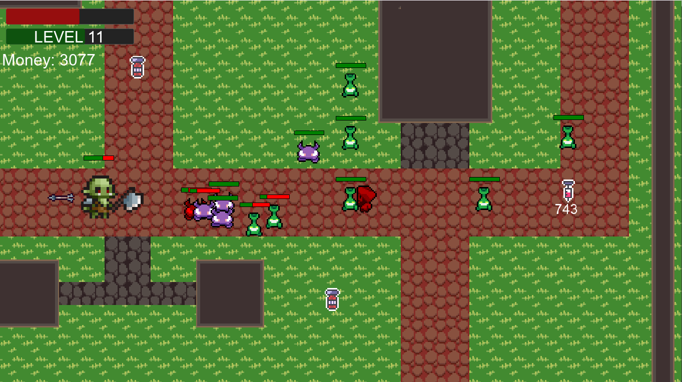 Damage powerup, normal enemy, player character, health and experience bars, and tileset assets - Gamemaker RPG tutorial